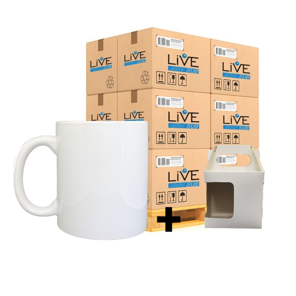 50 Canecas Para Sublimação Live Importada Porcelana 325 ML + 50 Caixinhas