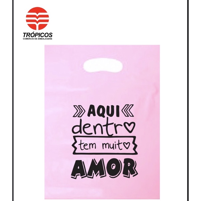 Sacola de frase 16x20/20x30/25x35/30x40 (aqui dentro tem muito amor) com 50 unidades