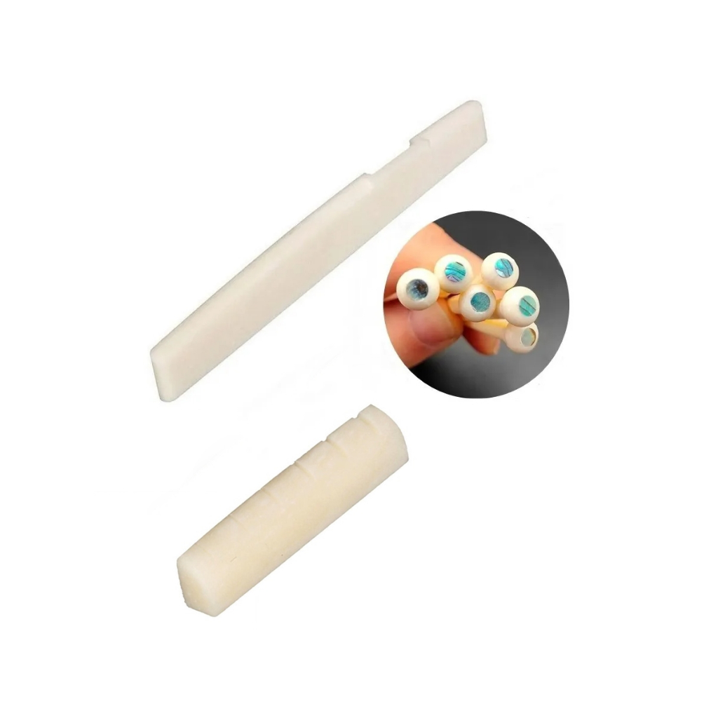 Kit NUT e Rastilho em Osso para Violão Aço + Pinos para Ponte Violão Madre Perola