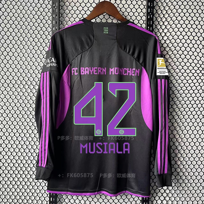 Novo Estilo de Manga Longa 2023-2024 (Bye-In) Liga Away Black Jersey 9 #KANE 42 #MUSIALA 25 #MULLER10 #SANE Nome e numeração personalizada Camisa de alta qualidade