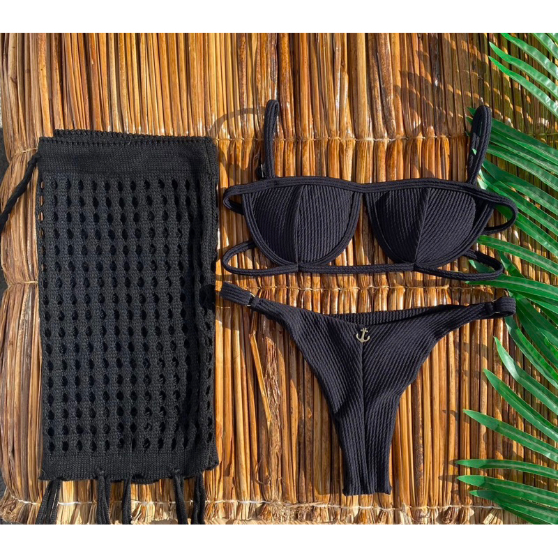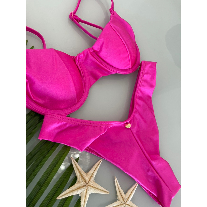 Biquíni Feminino Retro Meia Taça com Aro Calcinha Fio Duplo com bojo removível 5 cores Praia Verão 2024