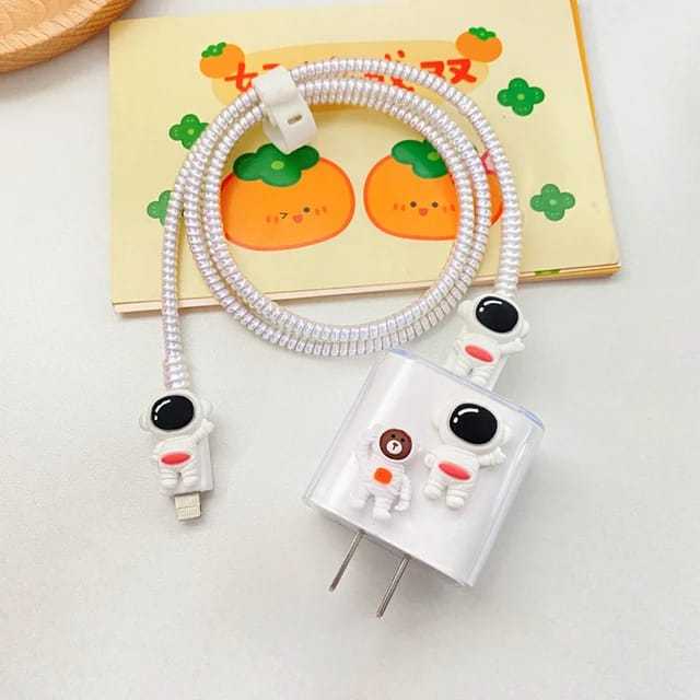 Kit Protetor De Cabo Usb Carregador capa de silicone para fio e fonte modelo ios 20w original capa astronauta