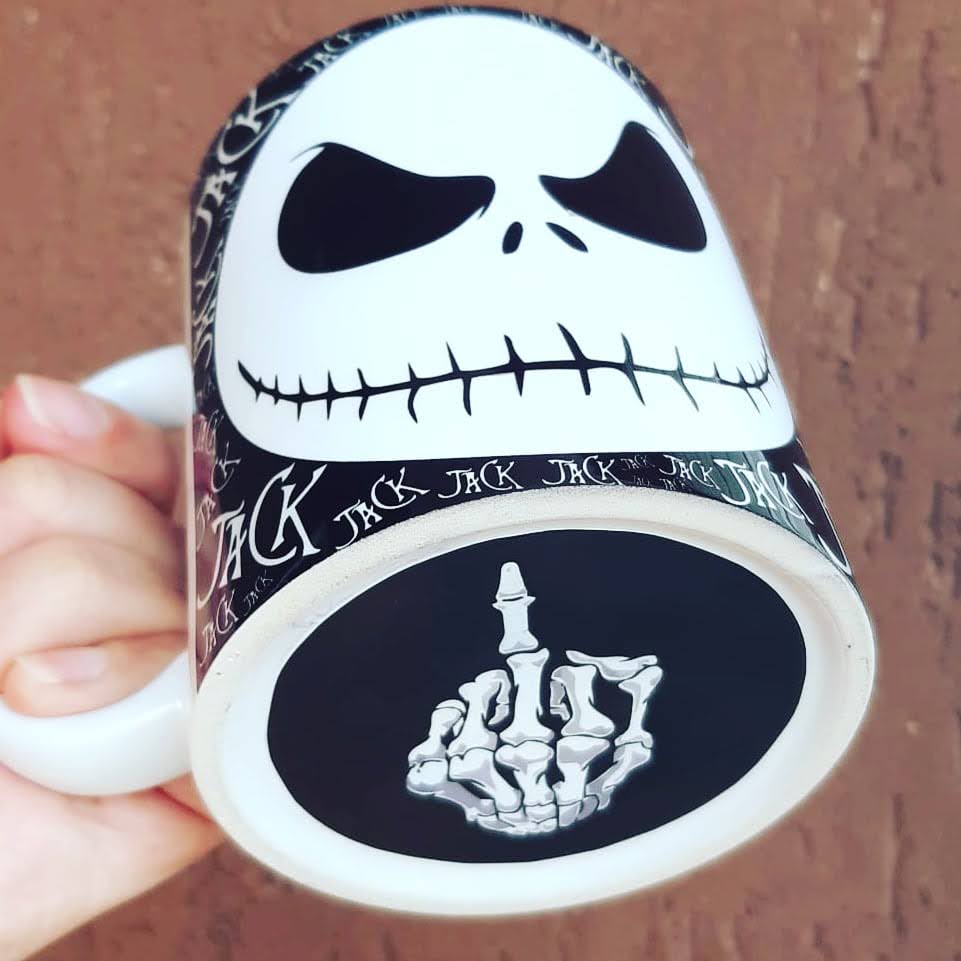 Caneca Jack O Estranho Mundo de Jack Adesivo Dedo do Meio Personalizada de Cerâmica Porcelana - Presente Criativo