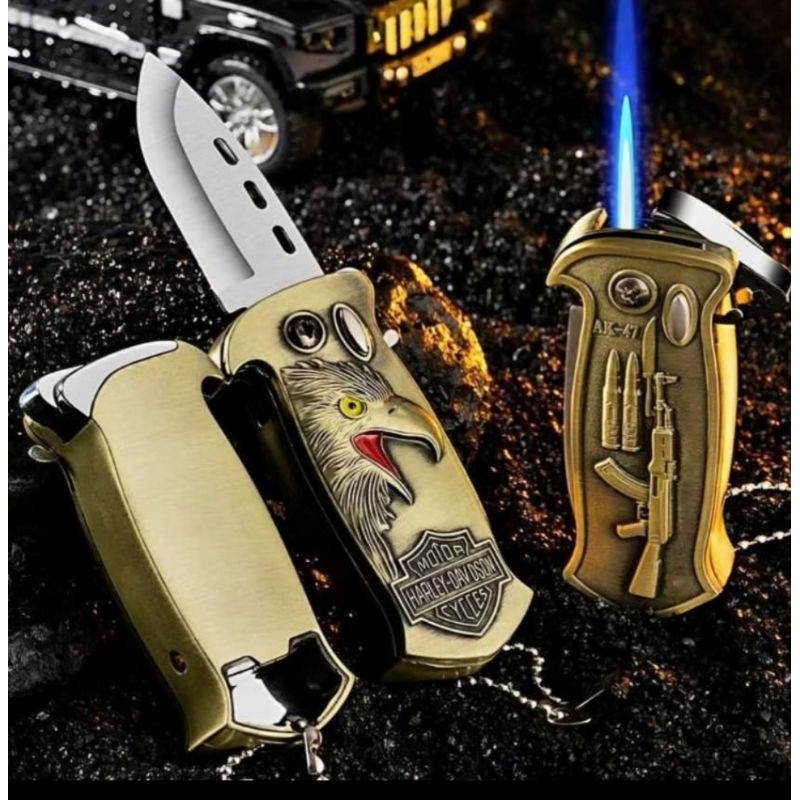 Esqueiro Maçarico com Mini Faca para Frutas ( últimas unidades)– Alto Relevo, Recarregável, Portátil