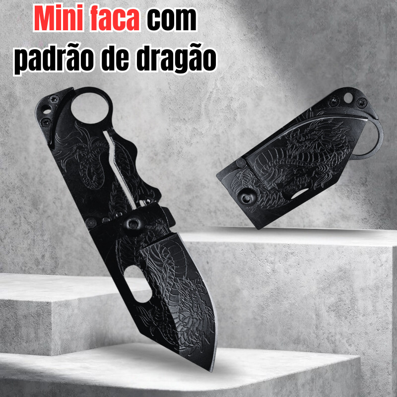 Mini Faca Tática Wallet Black Dragon Alto Relevo Aço Carbono