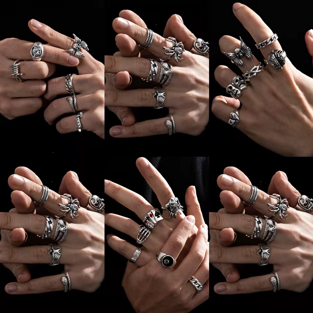 7Pcs Conjunto De Anéis De Cobra/Aranha/Caveira/Morcego/Punk/Hip-hop/Rock/Criativo Para Masculino