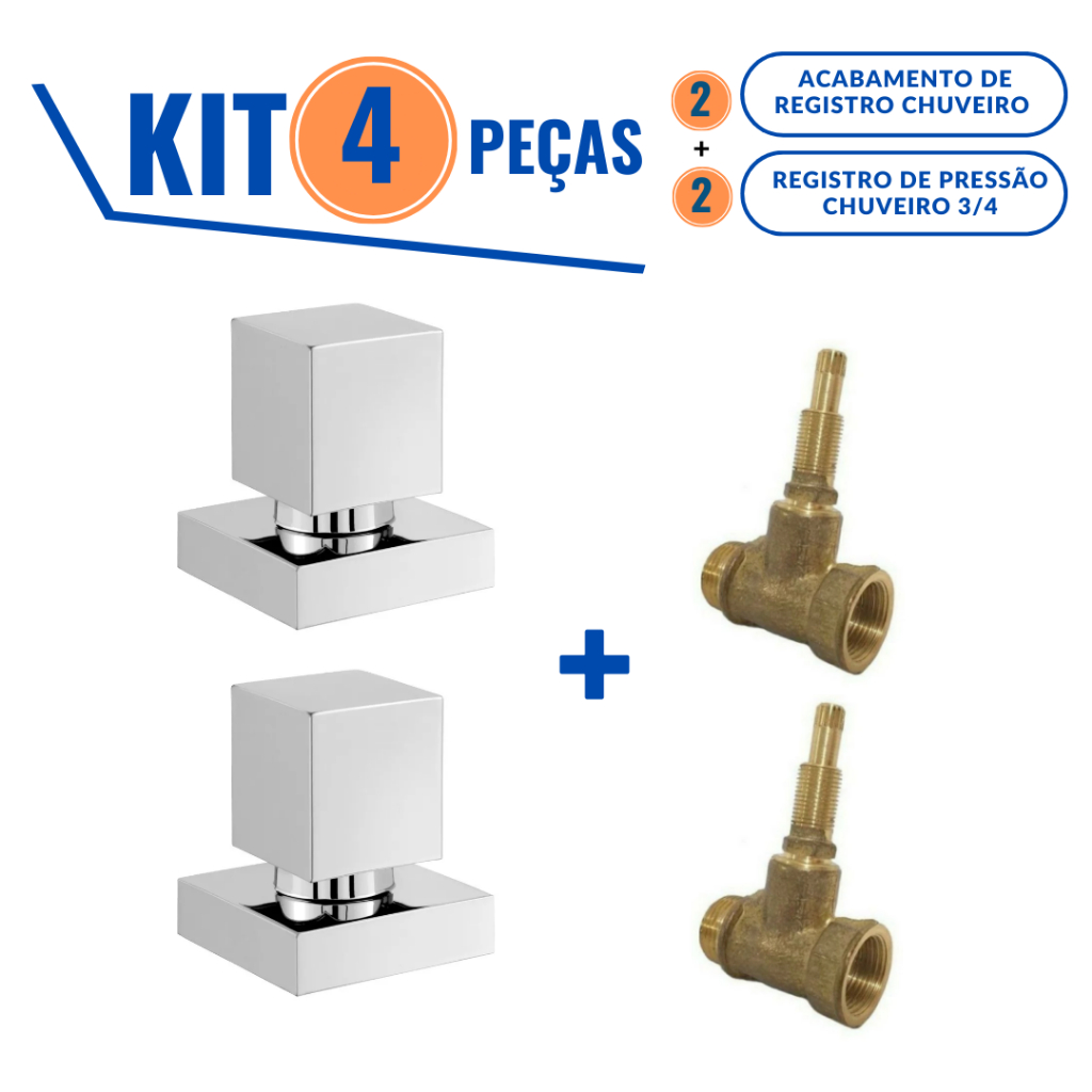 kit 02 Registro de Pressão 3/4 Padrão Deca + 2 Acabamento Metal Quadrado Cromado