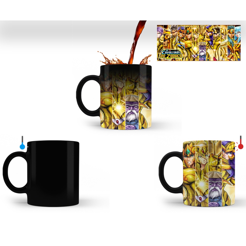 Caneca Mágica Os Cavaleiros do Zodíaco de Porcelana - Vários modelos (Muda de Cor)