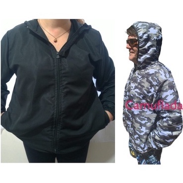Jaqueta corta vento, tactel, 100% poliester, térmica, capuz, bolso e zíper todos tamanhos adulto e infantil, unissex, motoqueiro motociclista ciclista, camuflada pescaria camping