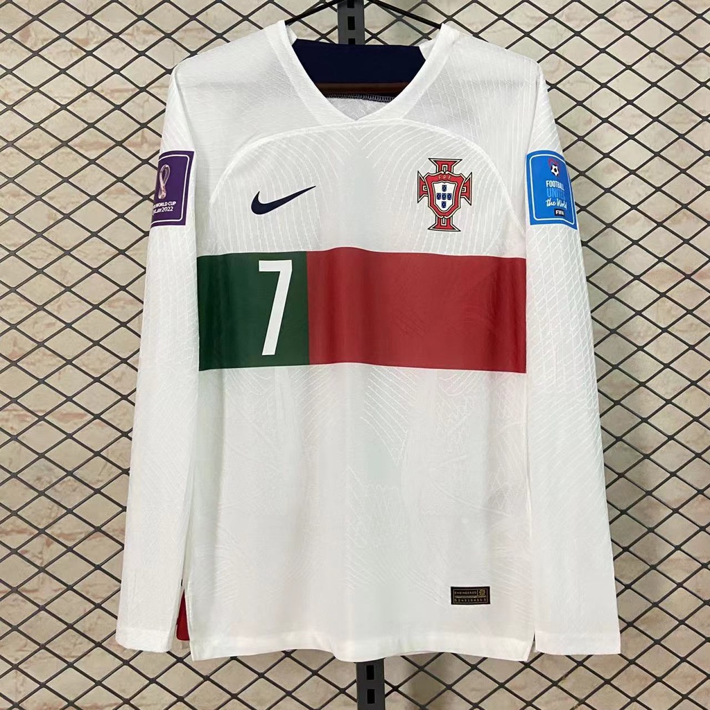 2022 Portugal Away Jersey Player Versão Manga Longa Camisa De Futebol Masculino RONALDO CR7
