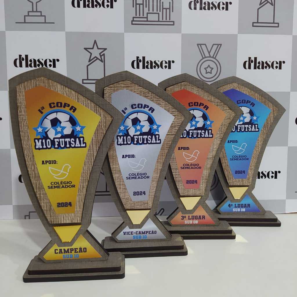 Kit 4 troféus em MDF com acrílico espelhado personalizado para futevôlei, vôlei, beach Tennis