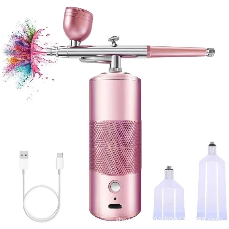 Kit de Aerógrafo Pulverizador de Tinta Spray Portátil e Sem Fio - Pistola Airbrush De Pintura - Arte Em Maquiagem, Unha, Bolo, Confeitaria e Decoração - Névoa, Oxigênio, Pulverizador, Compressor.