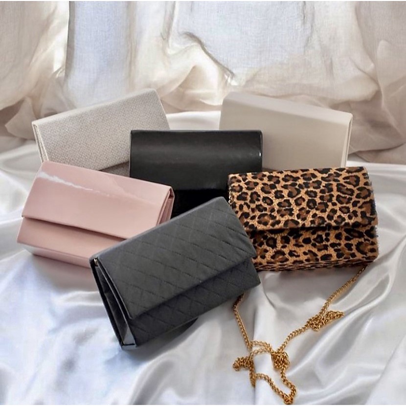 Kit 3 Bolsa Bolsinha De Mão Feminina Com Corrente Transversal Couro Beleza Sofisticada Moda