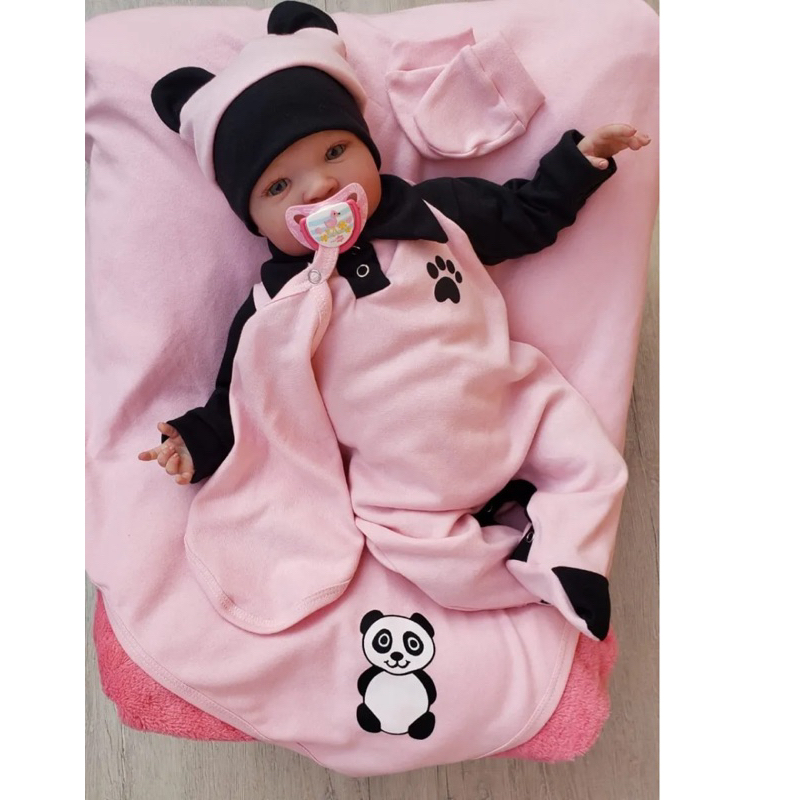 Kit saída de maternidade 5 peças Bebê Baby Panda Rosa