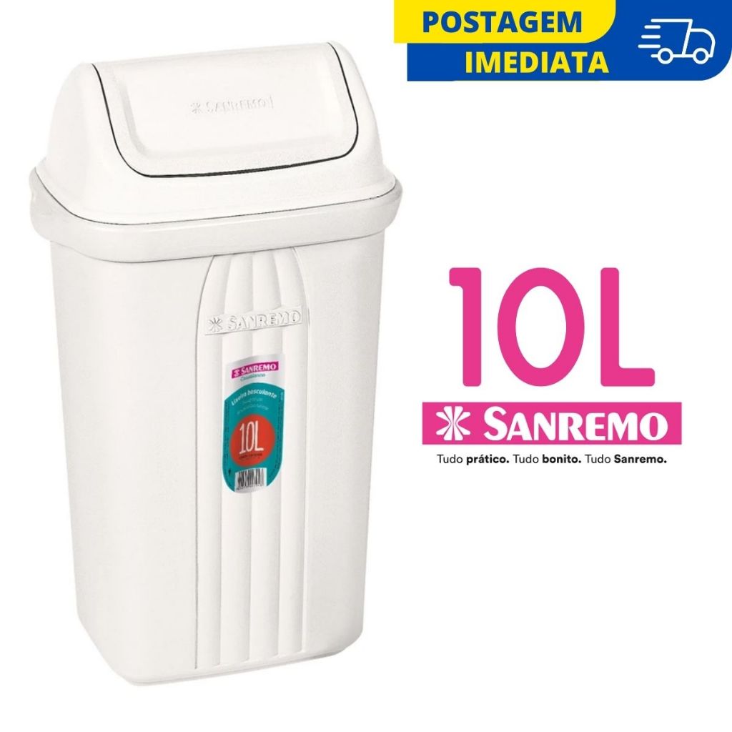 Lixeira Plástico com tampa Basculante para Banheiro 10 litros Sanremo