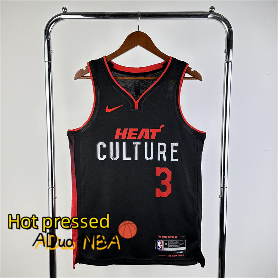Hot pressed nba Miami Heat #3 Dwyane Wade Black 2023/24 Swingman City Edition blusa de basquete Jersey