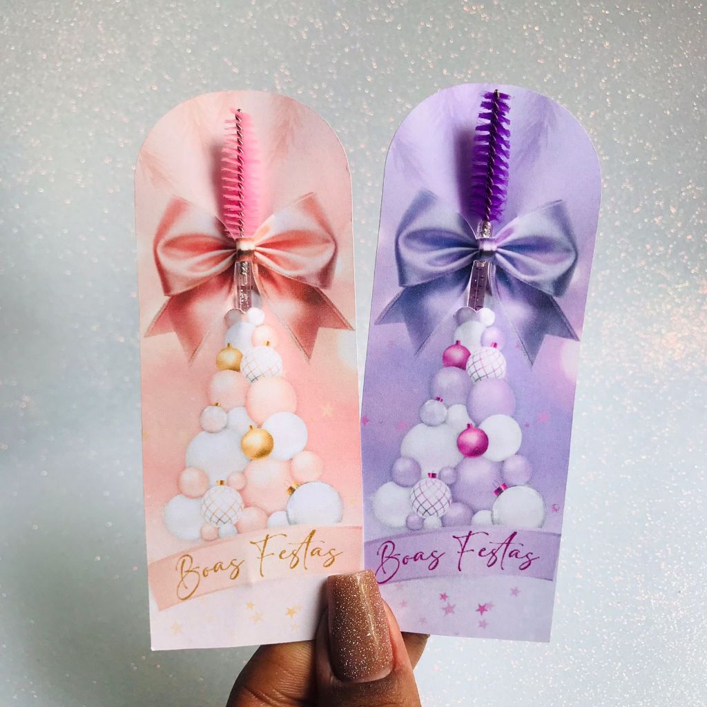 50 /100 Tag para escovinha de cílios Mimo Cliente Brinde Lembrancinha Natal lilás ou rosa