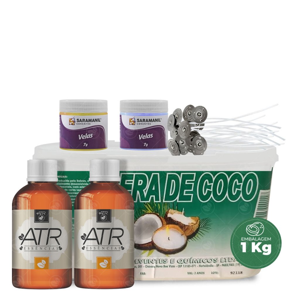 Kit Fabricação De Velas Aromáticas 1kg Cera de Coco 2 Essências Óleo 100ml 2 Corantes em Pó 10 Pavio