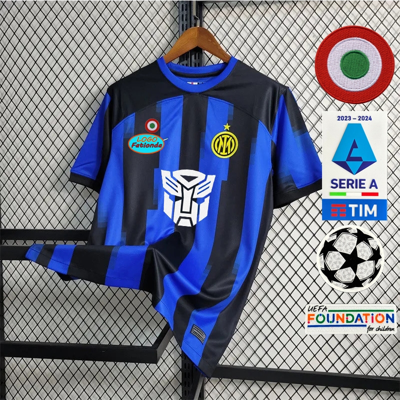 Inter Milão 23/24 Inter Milan Home Transformers Jersey Fãs Versão De Futebol Nome Personalizado 2023 2024 Camisa