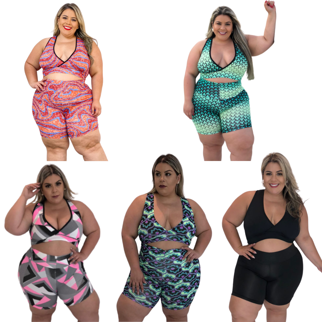 Kit 5 Roupa de Academia Plus Size Feminino Conjunto Fitness Prática de Exercícios Top + Short em Atacado
