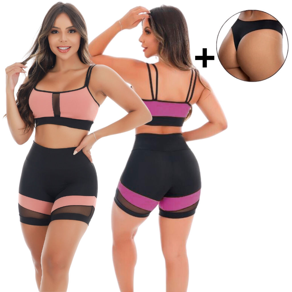 KIT 2 Conjunto Top e Short Feminino Roupa de Academia Fitness Crossfit Yoga