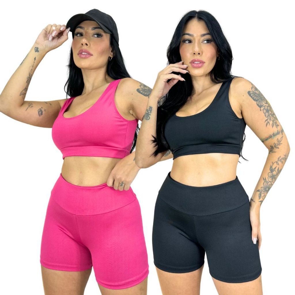Kit 2 Conjunto Academia Shortinho e Top Fitness Roupa de Treino Feminina