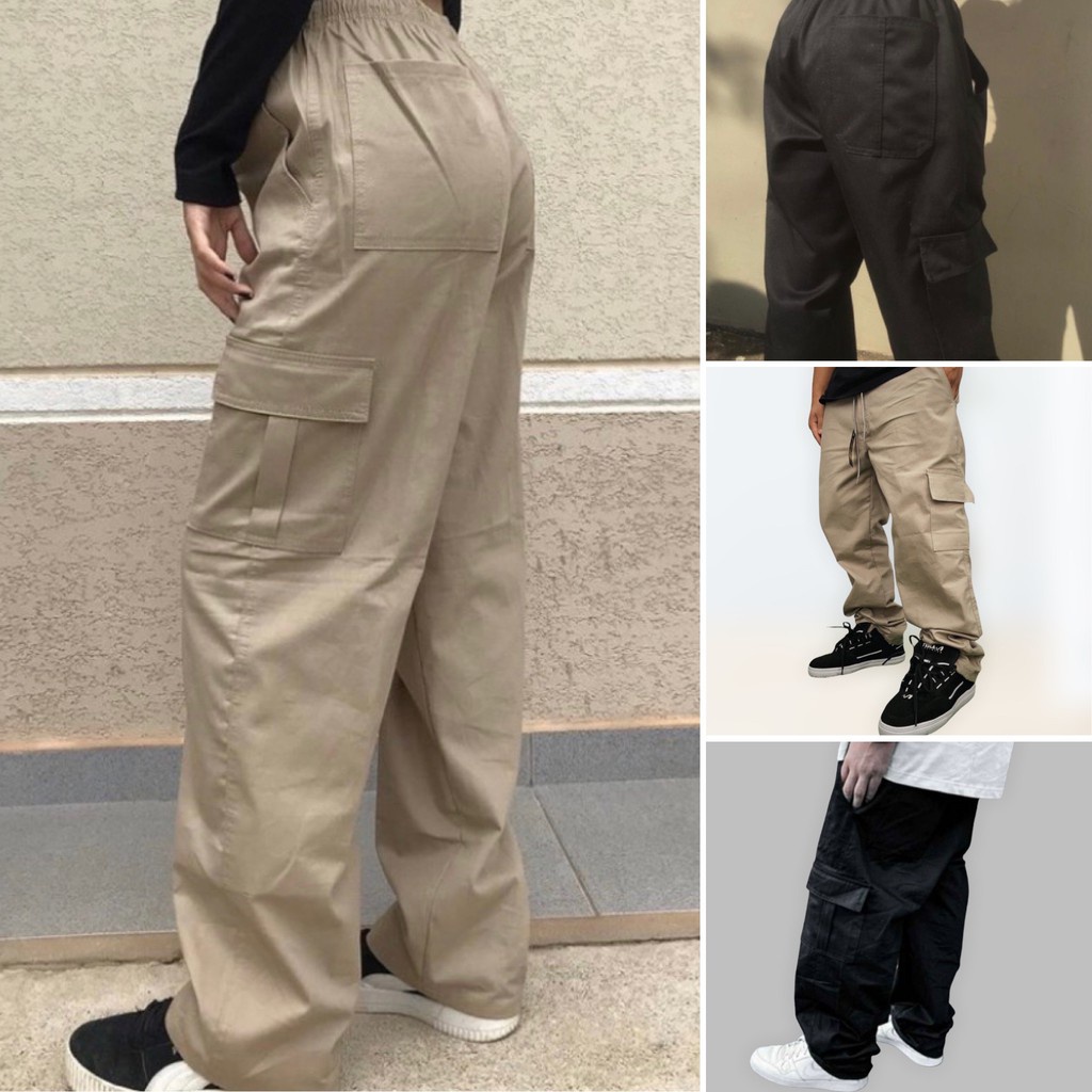 Calça Cargo 5 Bolsos Masculina Feminina StreetWear Larga Caqui Bege Preta Calca Skatista Unissex