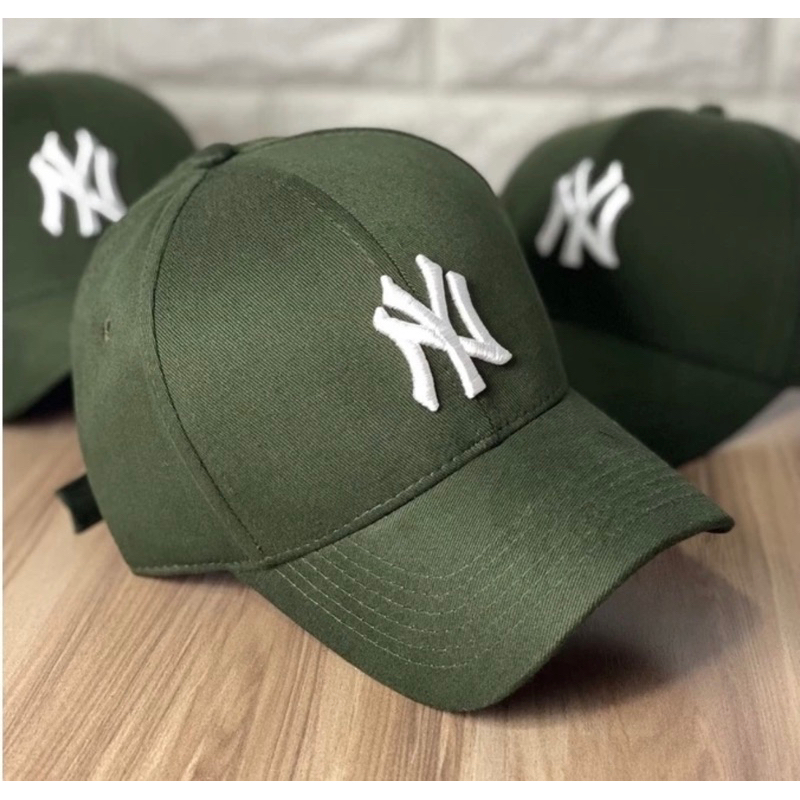 Boné New York Verde Militar Logo Branco Feminino Masculino Altissima Qualidade