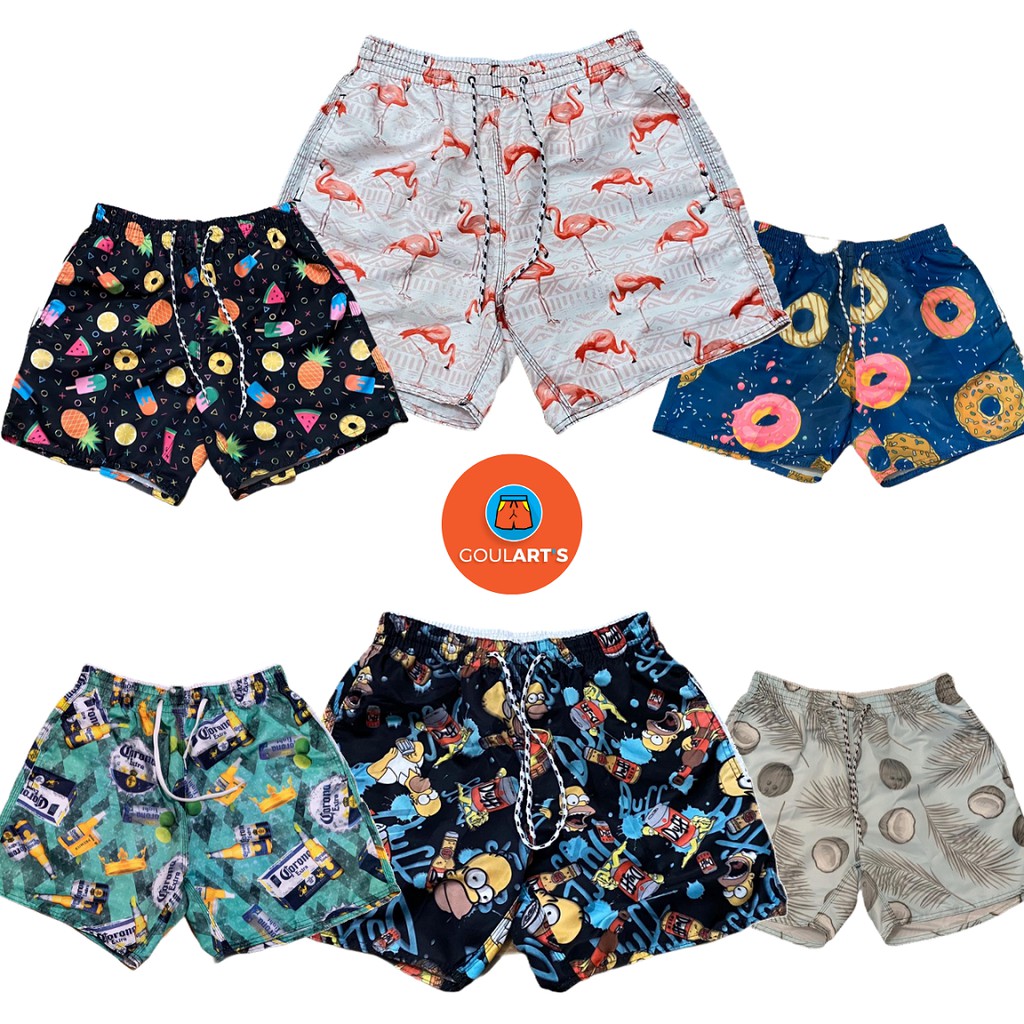 Kit 2 Shorts De Elástico Estampados Moda Praia Tactel Várias Estampas