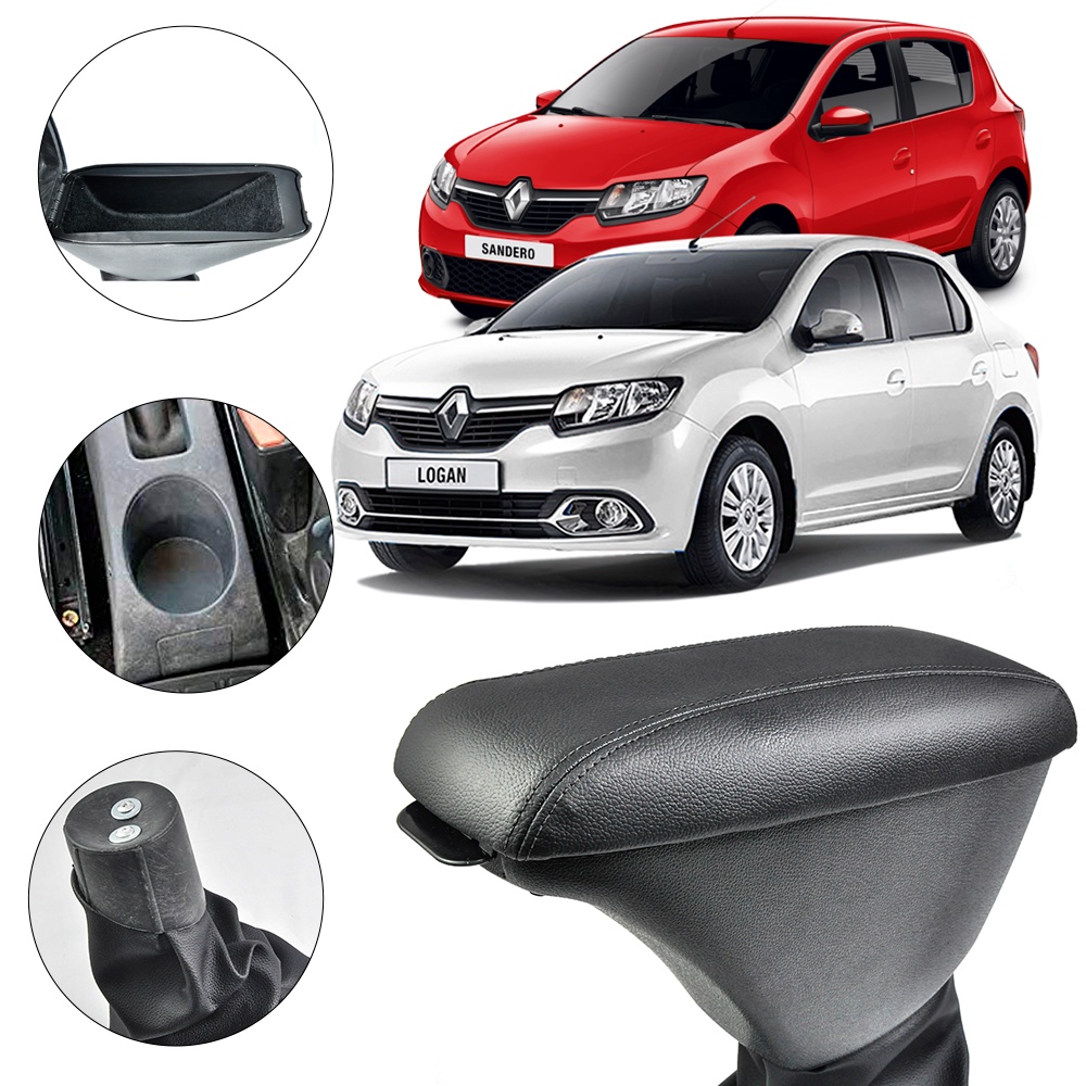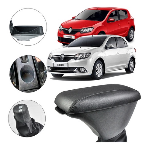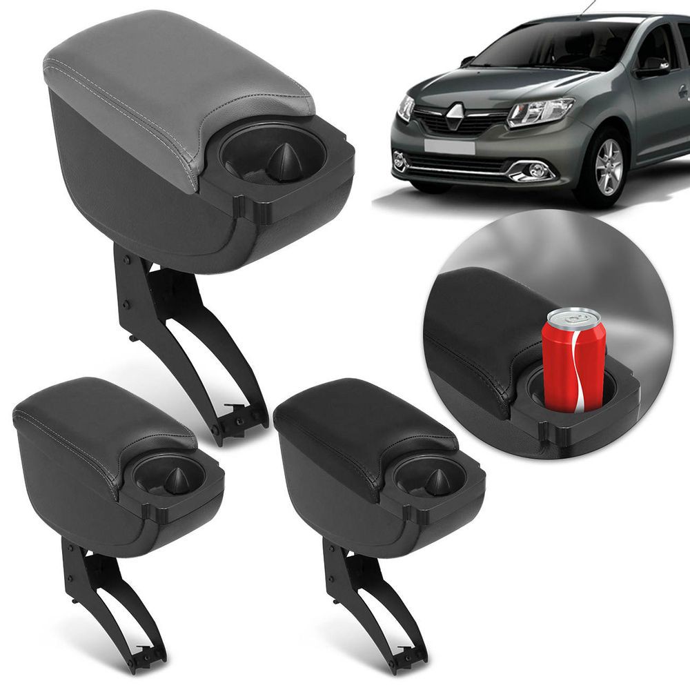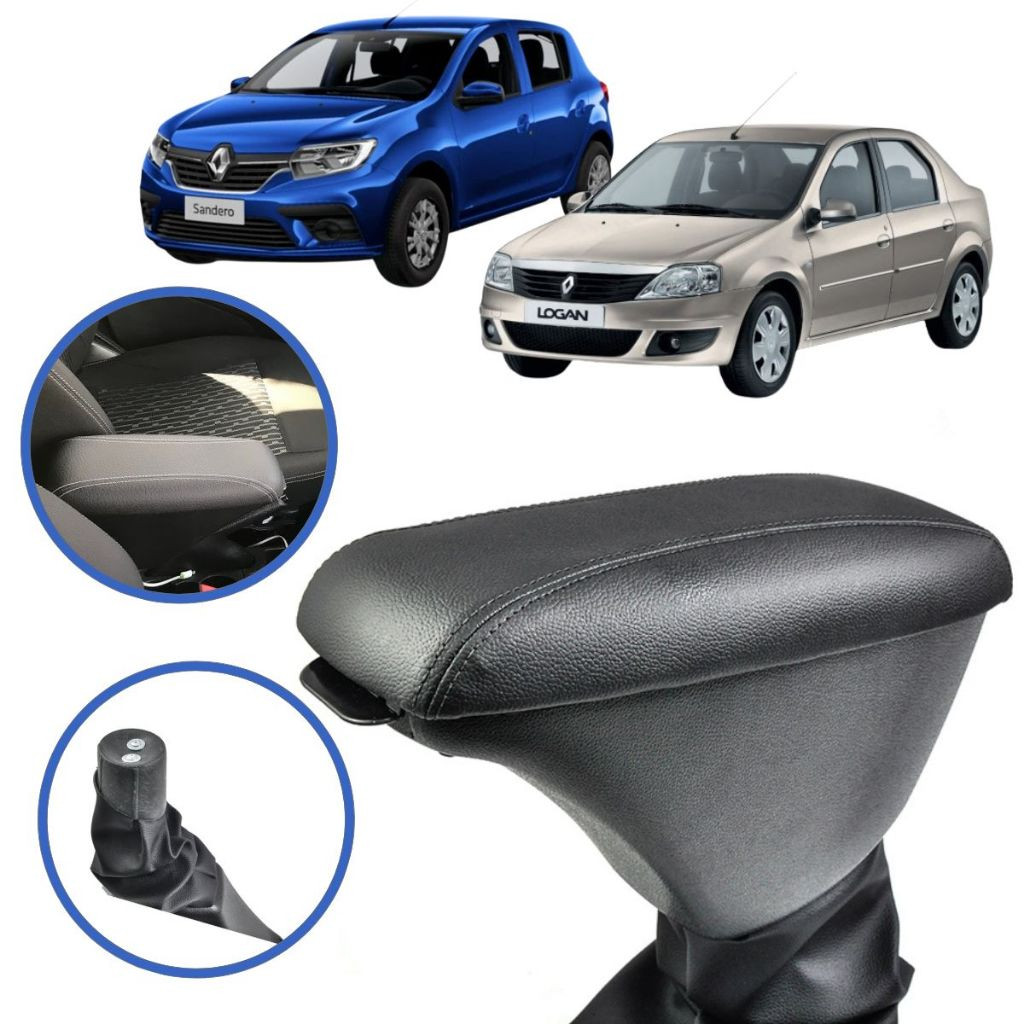 Encosto Descanso de Braço Apoio Renault Logan Sandero 2007 a 2020 Porta Objetos Couro Ecológico