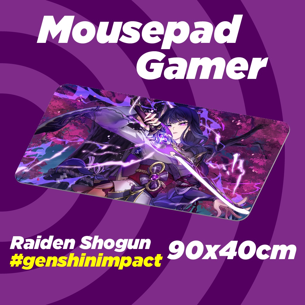 Mouse Pad Gamer Personalizado - Raiden Shogun - Genshin Impact - 90x40cm