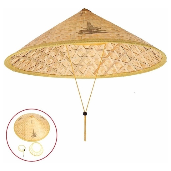 Chapéu chines de sol bambu artesanal com encaixe a cabeça unissex
