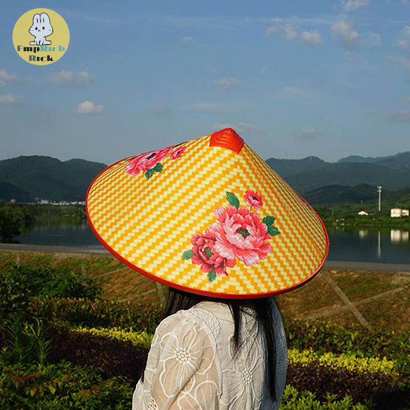 EMRRK > Chapéu De Bambu Chinês Retro Rattan Pescador Palha Dança De Chuva De Plástico Novo