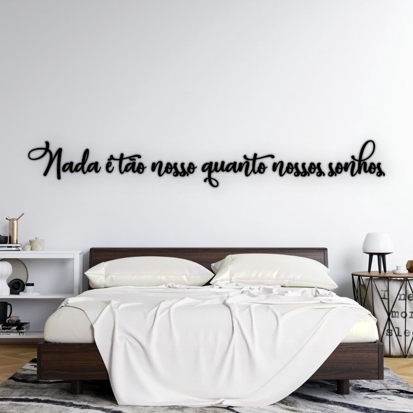 Frase decorativa Nada é tão nosso quanto nossos sonhos MDF 3mm 100cm Palavras Decorativas para parede