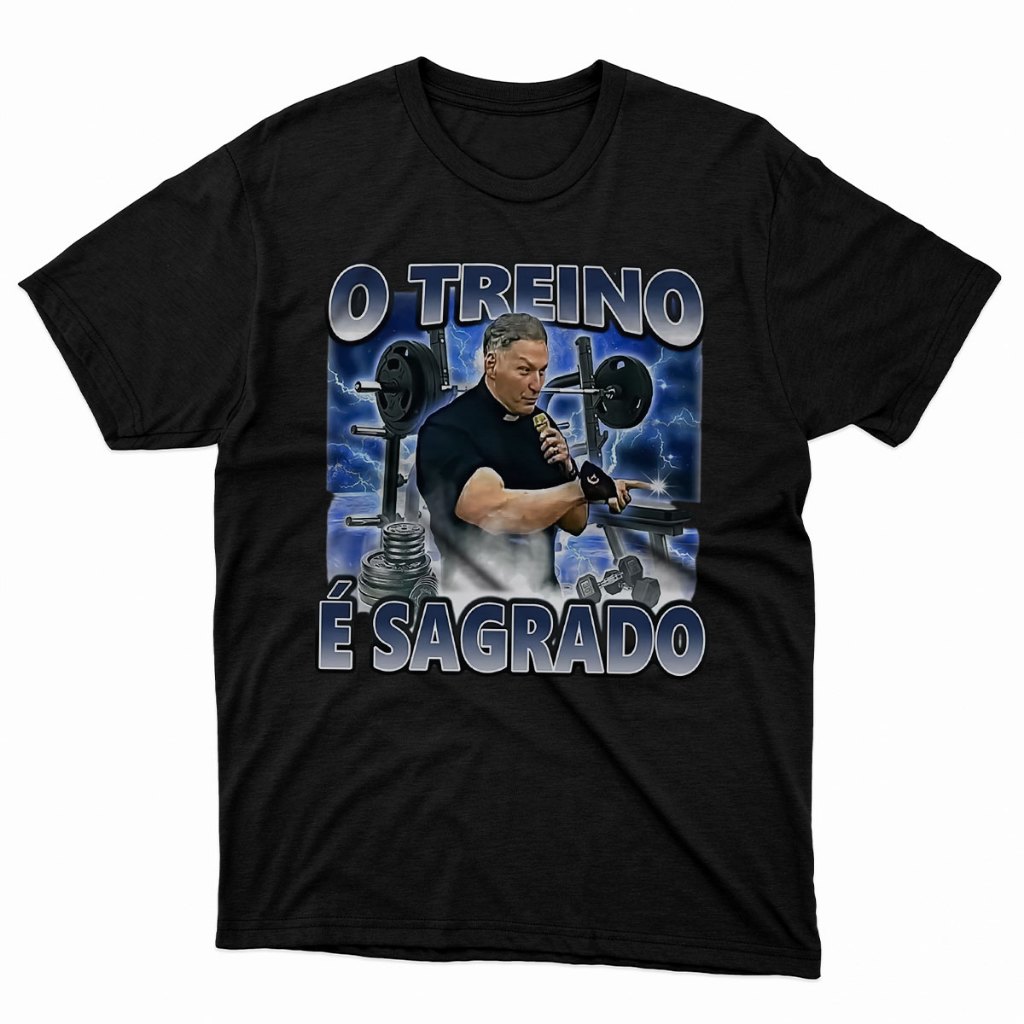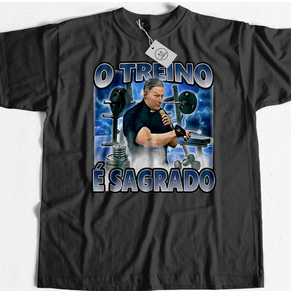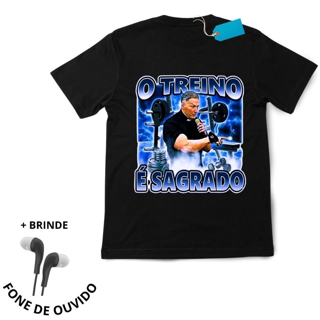 Camiseta Padre Marcelo Rossi Maromba "O Treino é Sagrado" , Camiseta Meme Academia Treino, Blusa