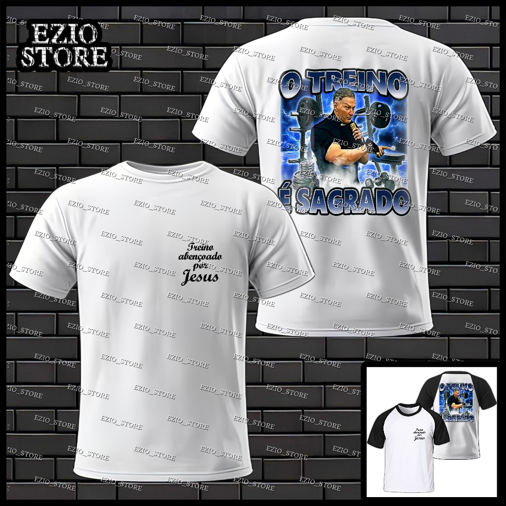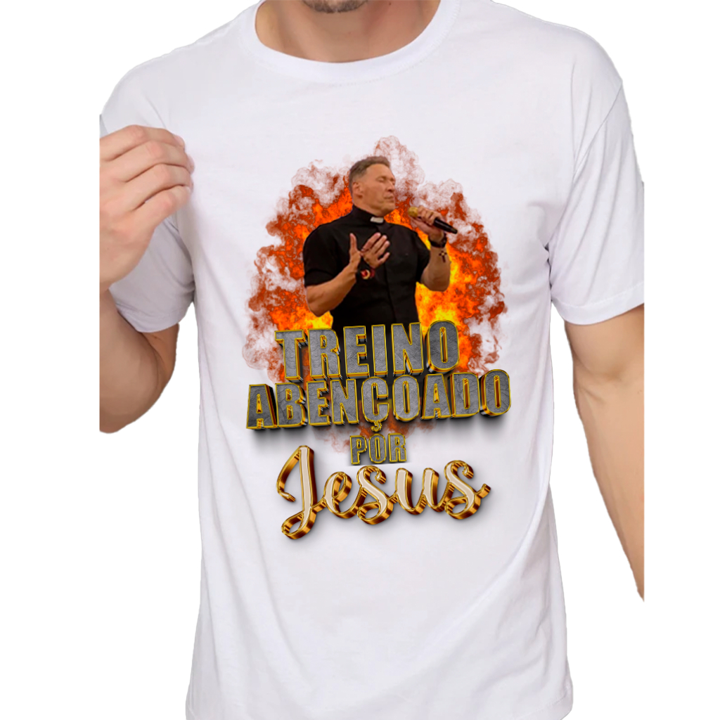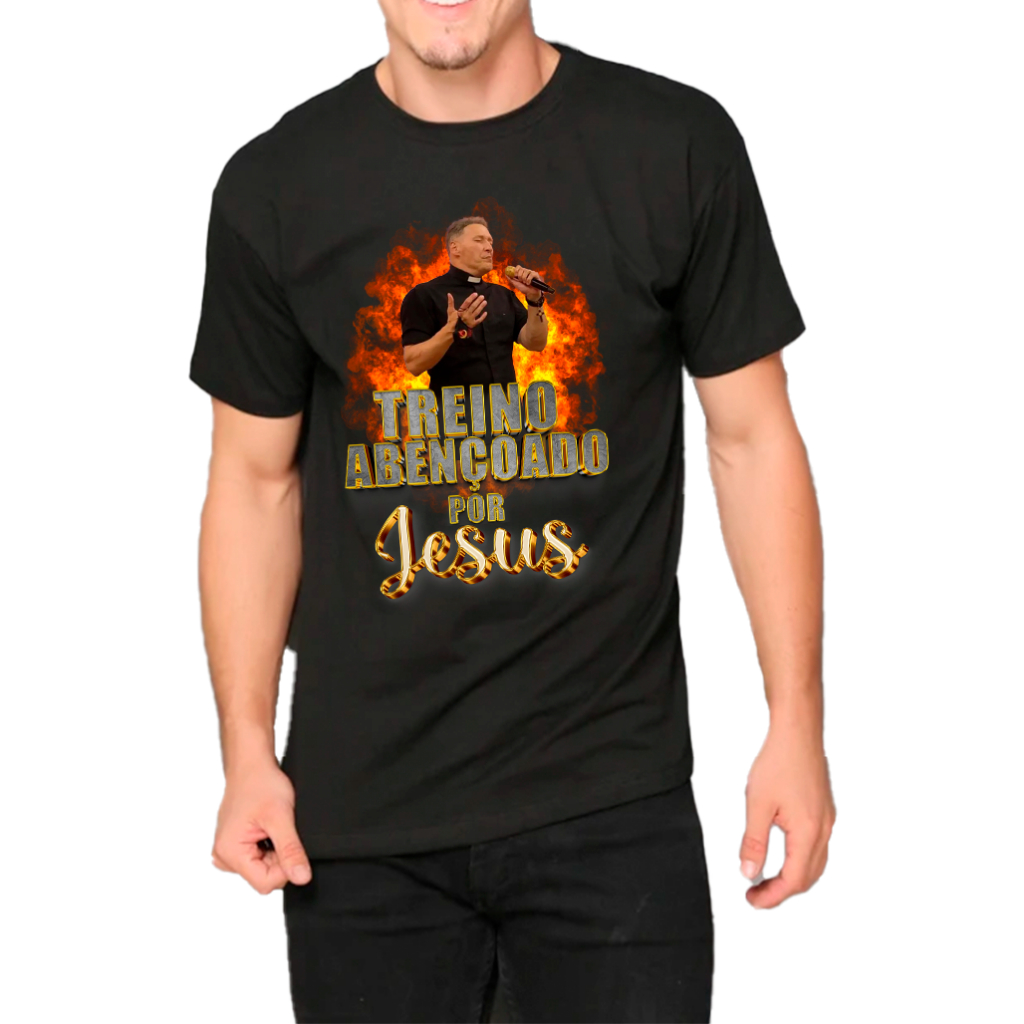 Camiseta Meme Padre Marcelo Rossi O Treino é Sagrado, Unissex, Treino Abençoado Por Jesus Frente e Costas , Camisa Blusa Academia, Roupa para Treino Personalizada