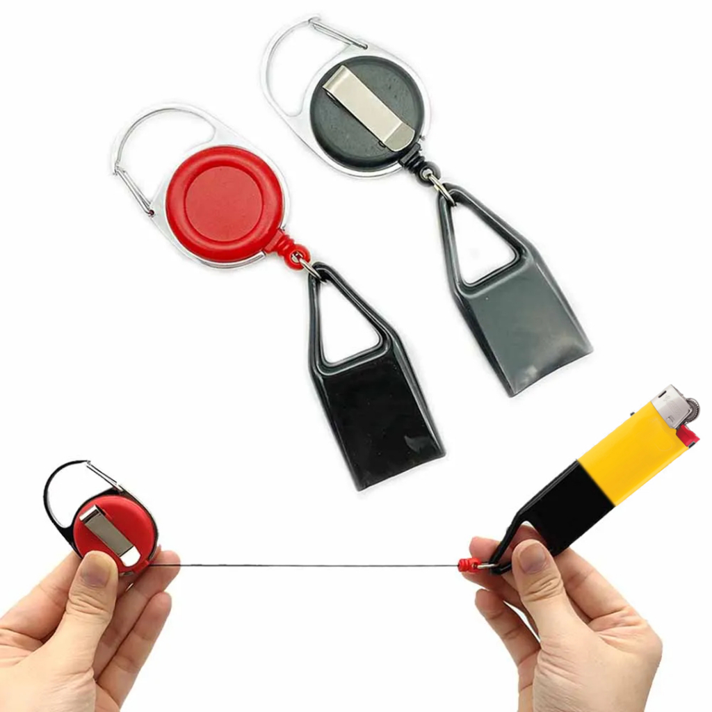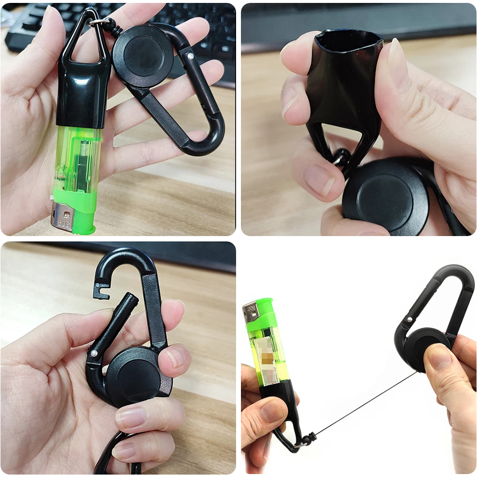 Chaveiro mosquetão Porta Isqueiro Retrátil Anti Rato para isqueiros Bic e similares