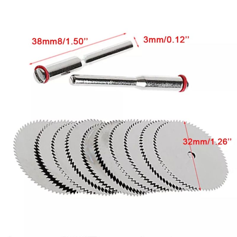 Kit 10 Mini Discos Serra 32mm Para corte e 2 hastes