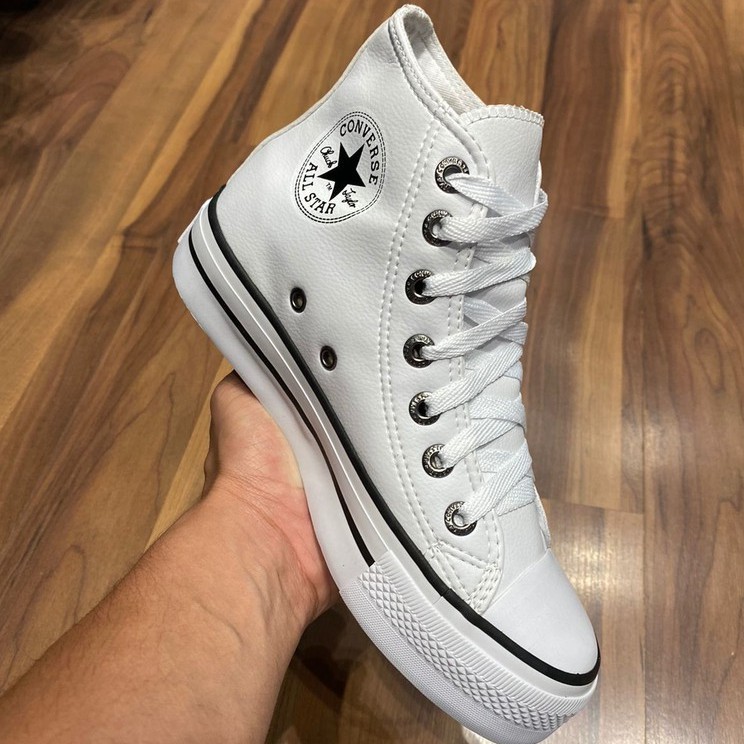 Tênis All Star Chucky Taylor Cano Alto (Botinha) Unissex Couro Branco Hiper Barato
