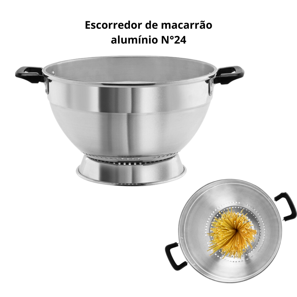 Escorredor de macarrão leguemes saladas de alumínio N°24 NA COR POLIDA