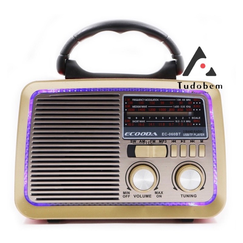Rádio Retrô Vintage Portátil Com Bluetooth Recarregável Am Fm Sw Pendrive Com Sd Usb