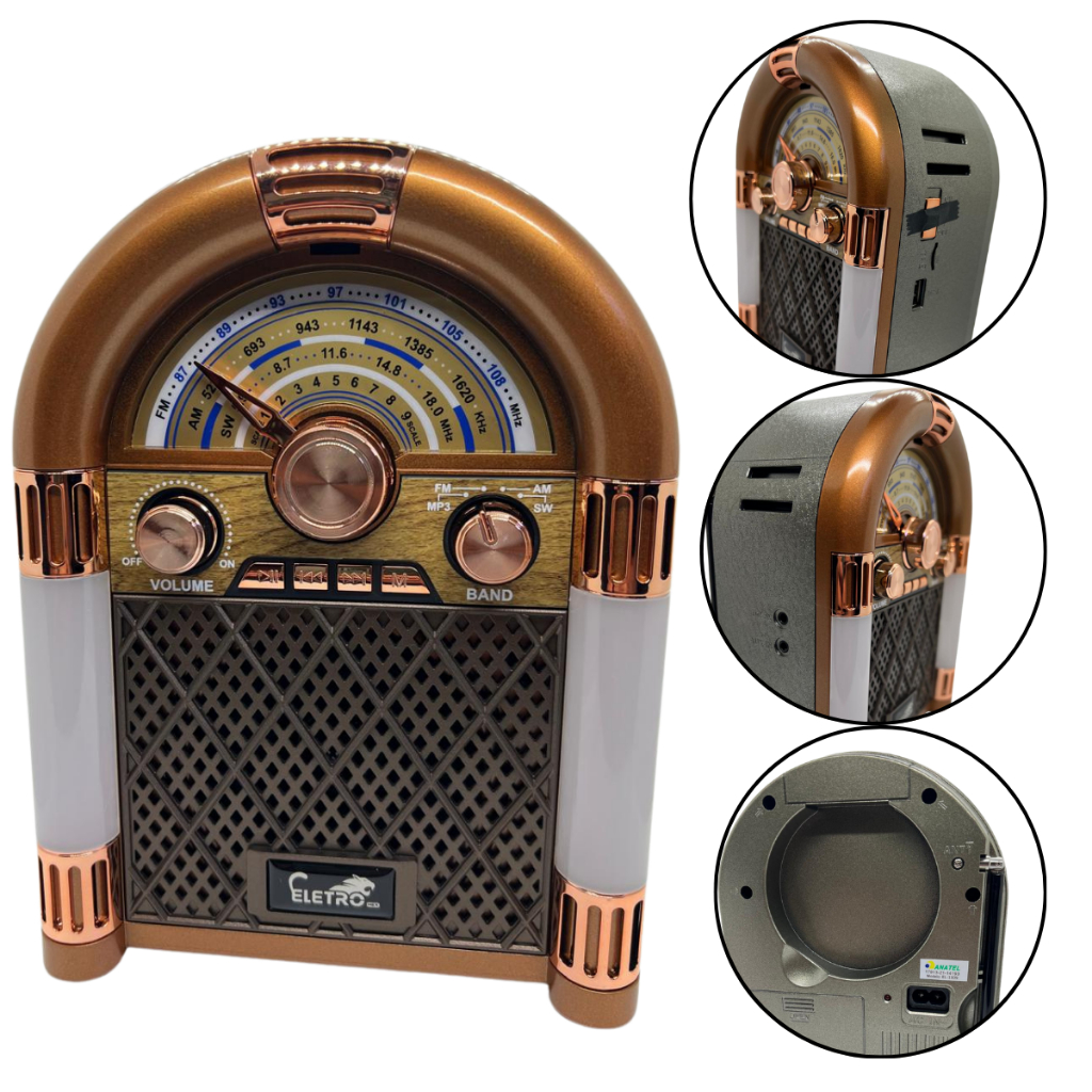 Caixa Som Retro Antiga Radio Am Fm Usb Aux Sd Recarregável Som Antena Analógico