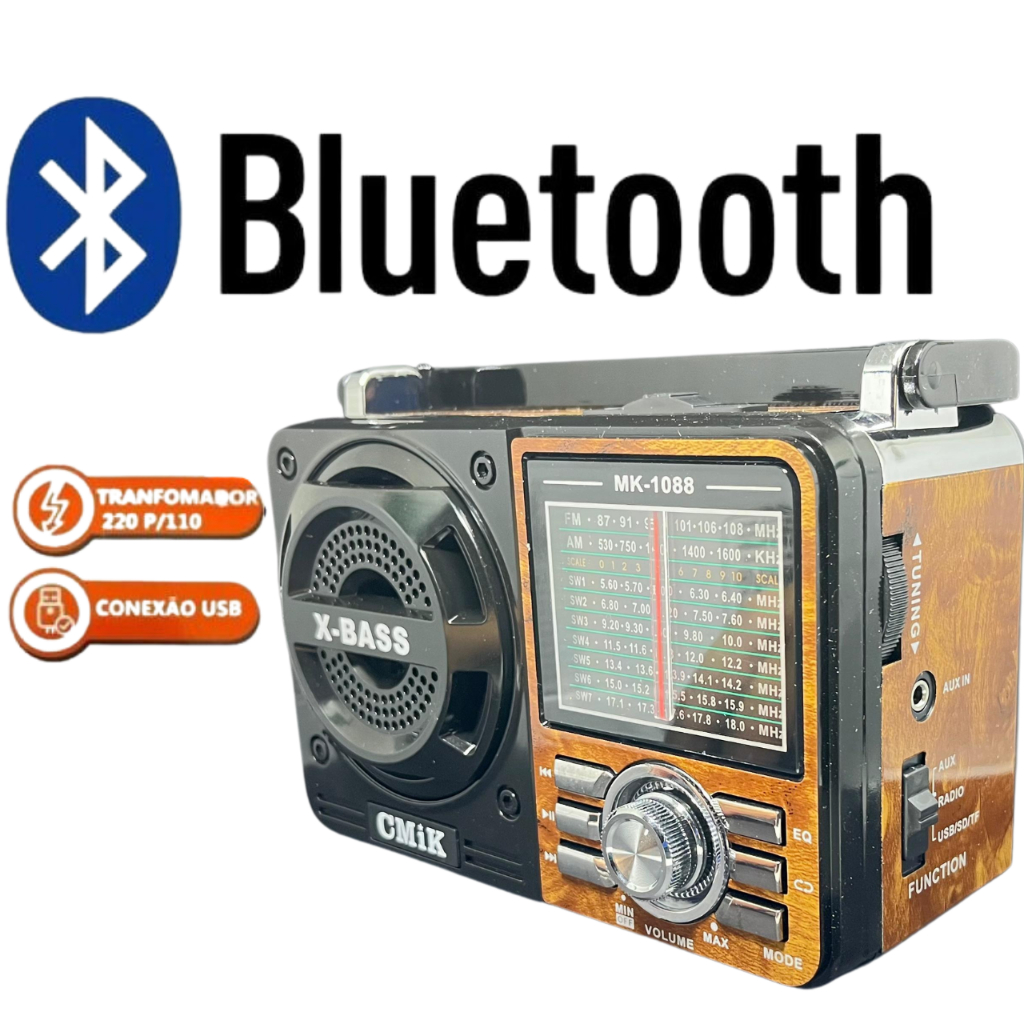 Caixa som portatil retro radio am fm 1088 COM bluetooth Entrada USB Cartão SD Auxiliar