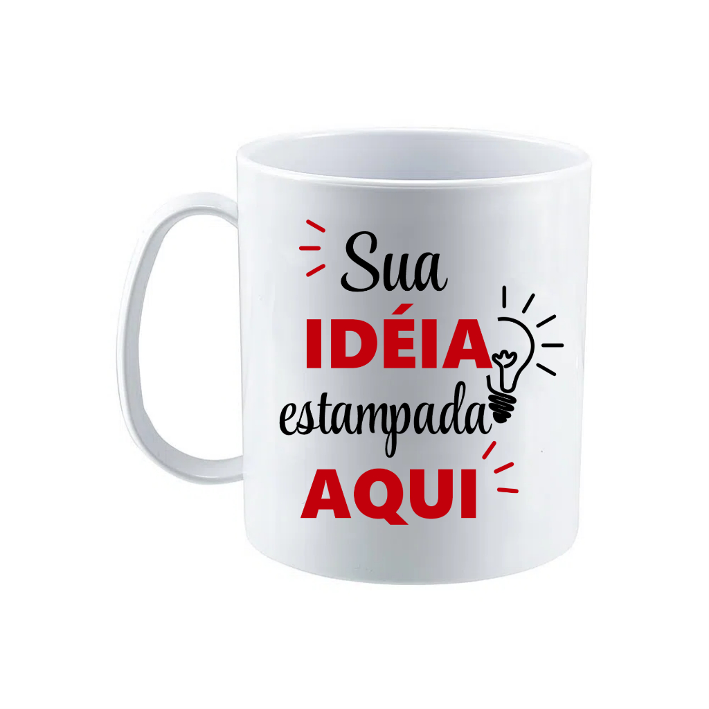 Caneca de Polímero (Plástico) Resistente Personalizada Sua Arte, Foto, Frase Nome 325mL | Não quebra