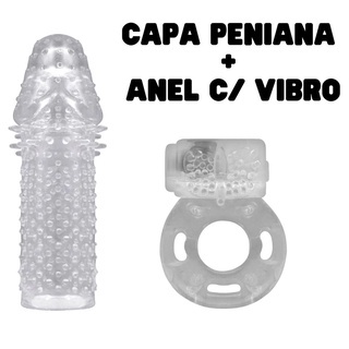 KIT Anel Peniano Vibrador + Capa Peniana Extensora Engrossa Aumenta Retarda Ejaculação e Estimula o Clitóris - SEX SHOP