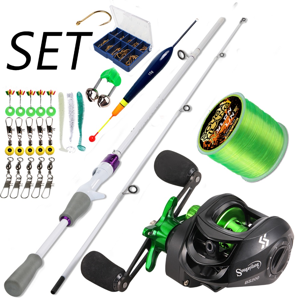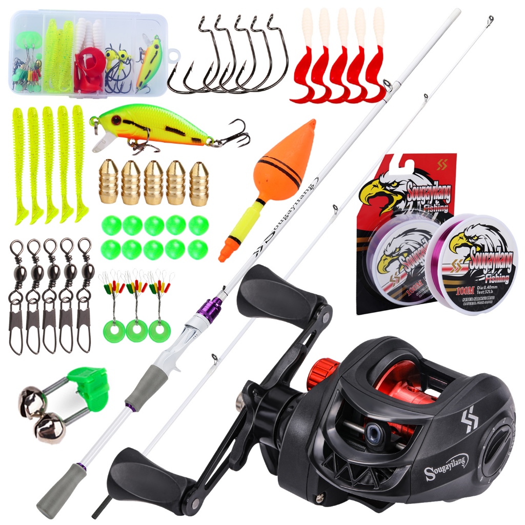 Sougayilang 1.8m 2 Seções Vara De Pesca E Carretel Isca Ganchos Conjunto Completo 7.2 : 1 Arrasto Máximo 10kg