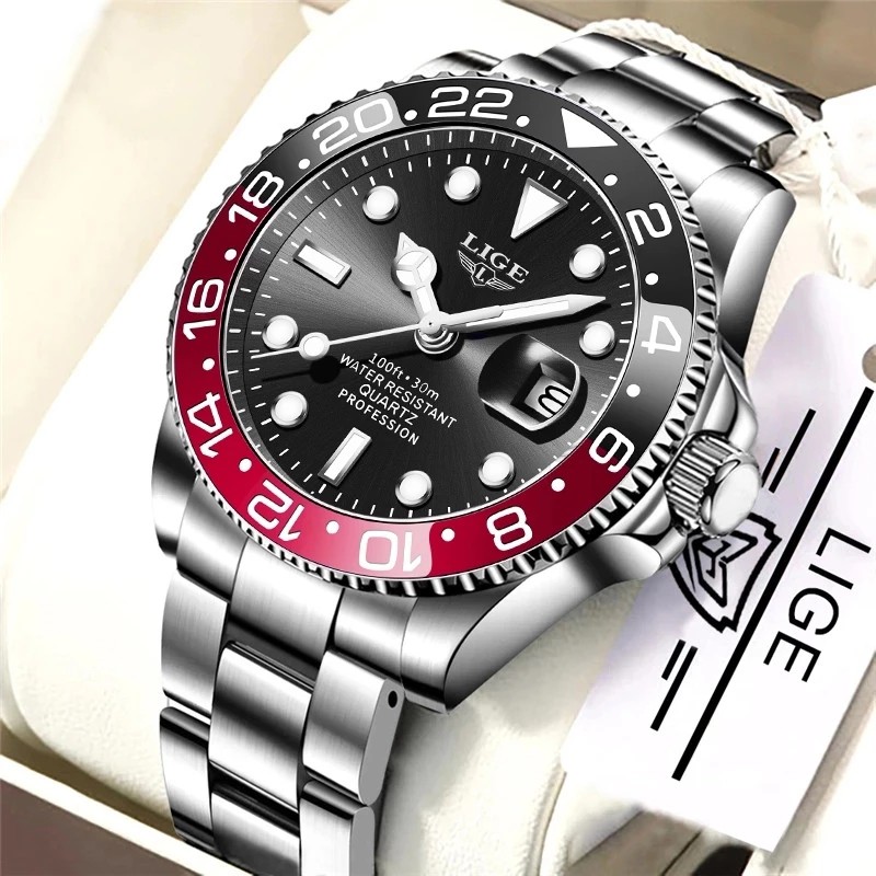 LIGE Relógio masculino à prova d'água marca de luxo relógio analógico de data de quartzo comercial de aço inoxidável