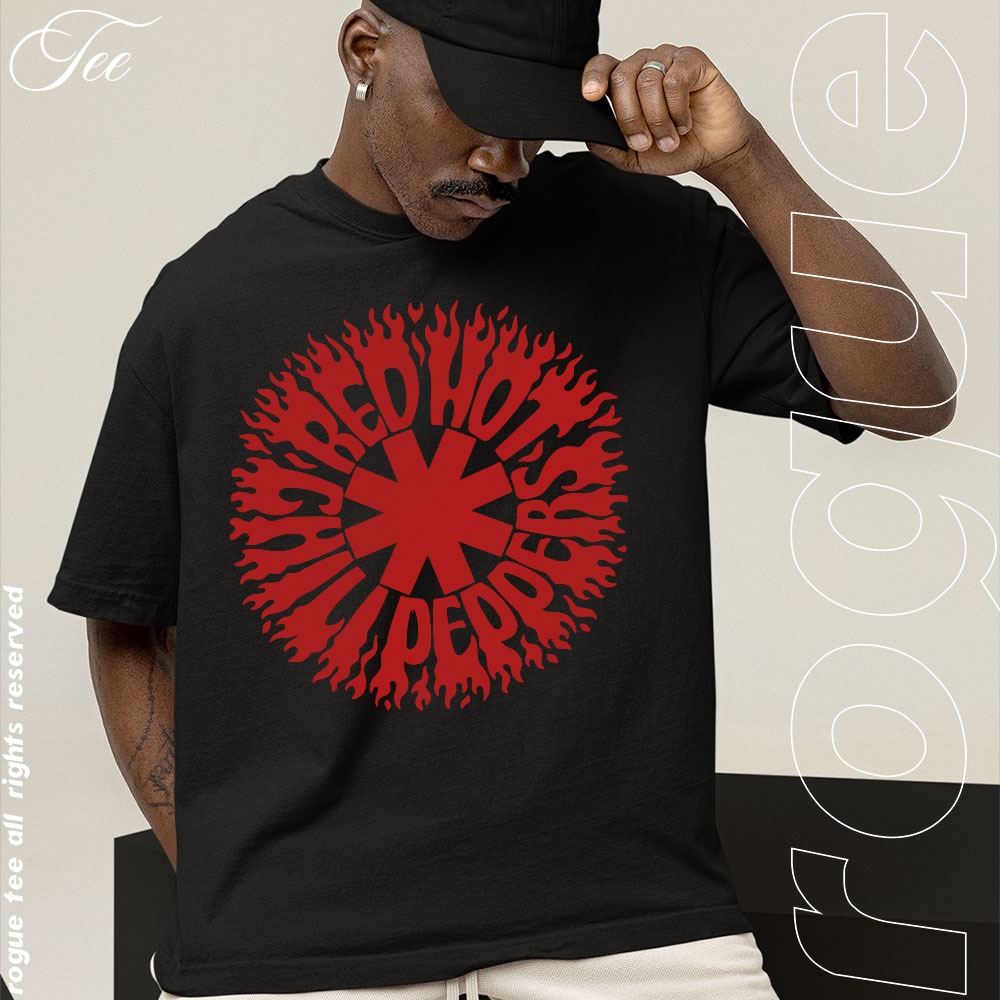 Camiseta Basica e OVERSIZED Red Hot Chili Peppers Flame Rock N Roll Banda Logo Unissex