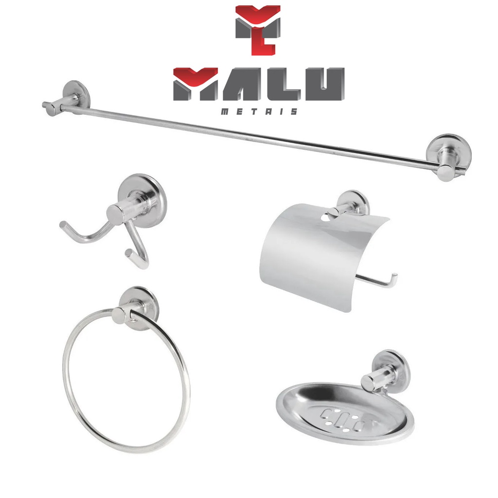 Kit Acessórios Para Banheiro de Metal Aço Inox 5 Peças COMPLETO 750