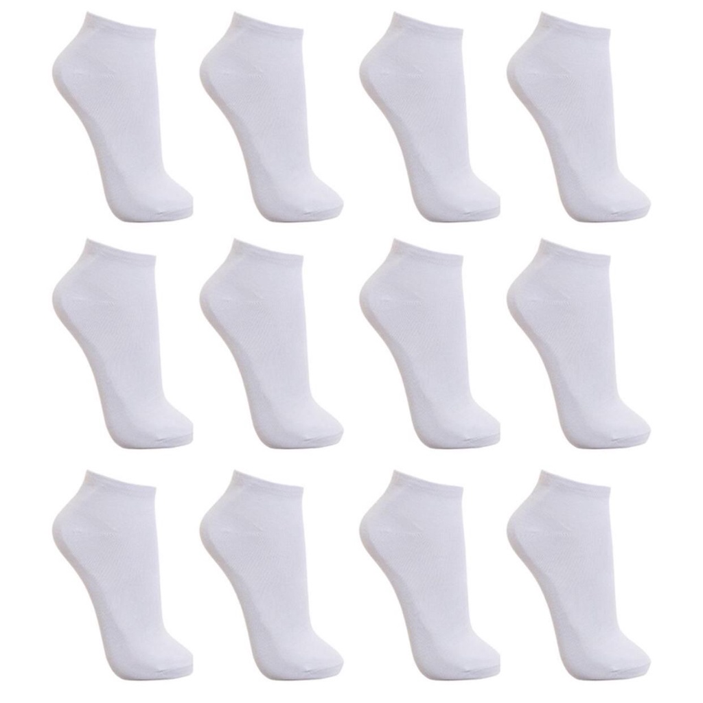 Kit 3, 6 Ou 12 Pares Meias Branca ou Preto Feminina e Masculina Cano Curto Soquete 35-40/40-46